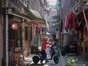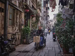 Czas zatrzymany w Liwan District - Guangzhou. Tylko skuterki już nie hałasują tak jak dawniej, wszystkie naładowane nowa energią atakują zwinnie i bezszelestnie. Wszystko tu jest “na ulicy” a zwłaszcza pranie i kwietniki. Szewc podzeluje i porozmawia a “złota rączka” naprawi wszystko. Przypomina mi się pan ostrzący nożyczki i “szmaaaty” wiec łezka w oku. Peselowo jakoś tak się robi ;)